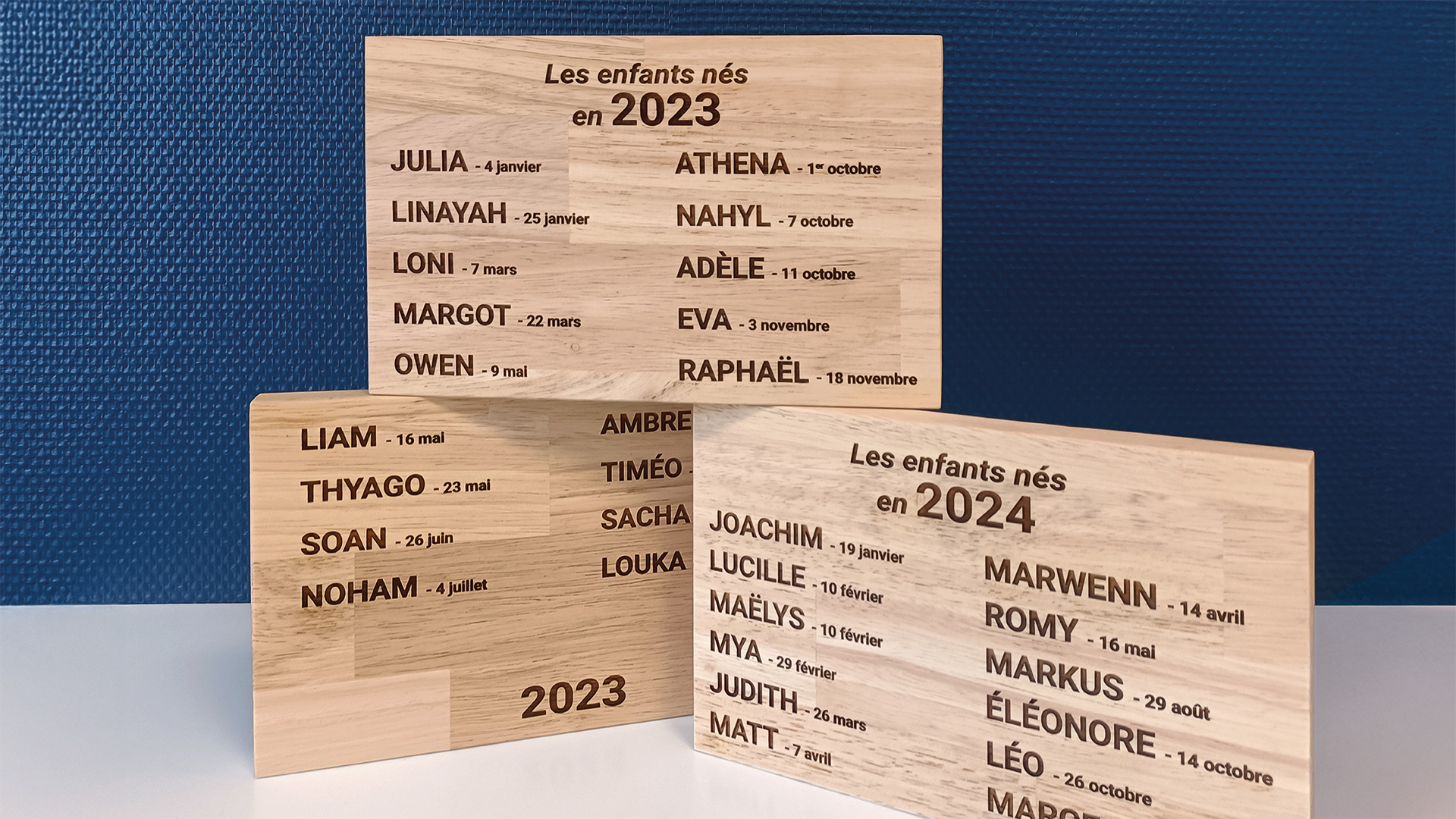 Gravure laser sur bois pour les enfants nés en 2023 et 2024