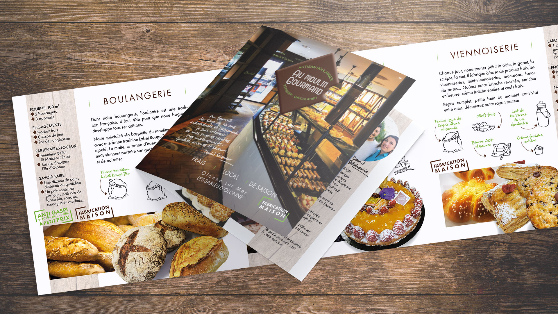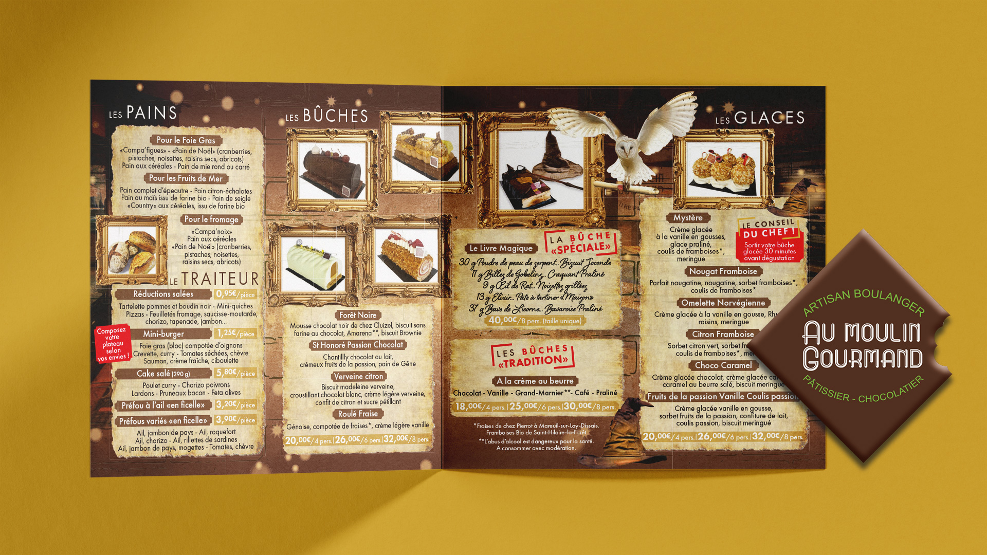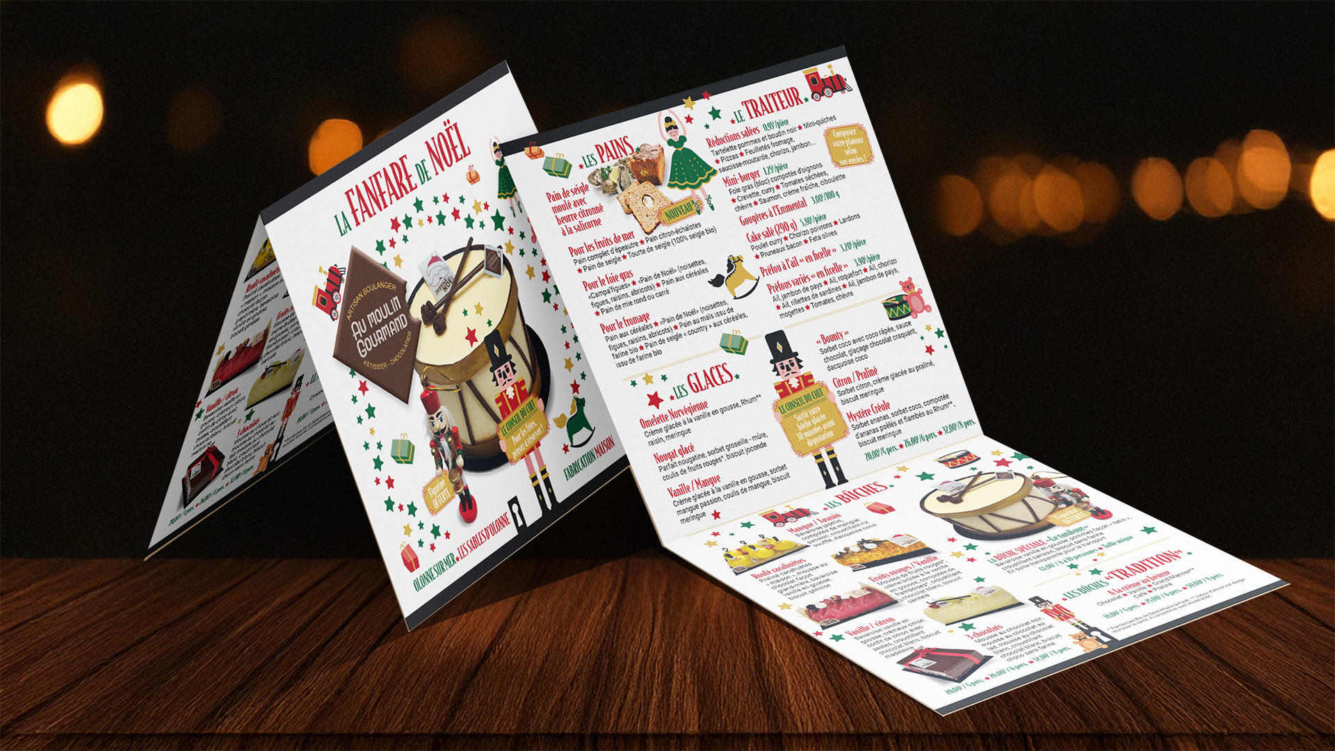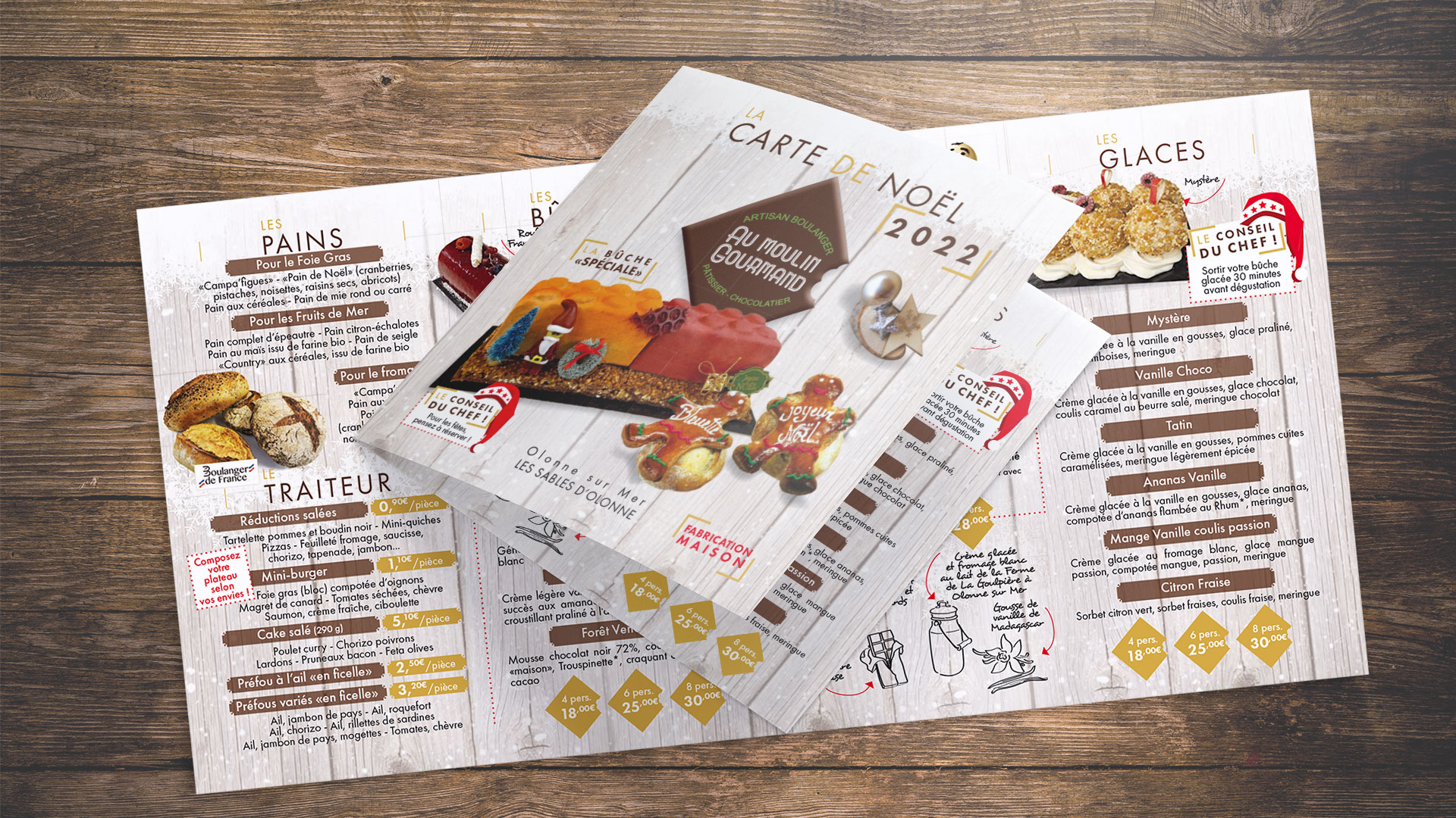 Réalisation de la communication, triptyque et carte de Noël. Tout est dit et plus encore pour le plaisir des papilles… et des gourmands.
