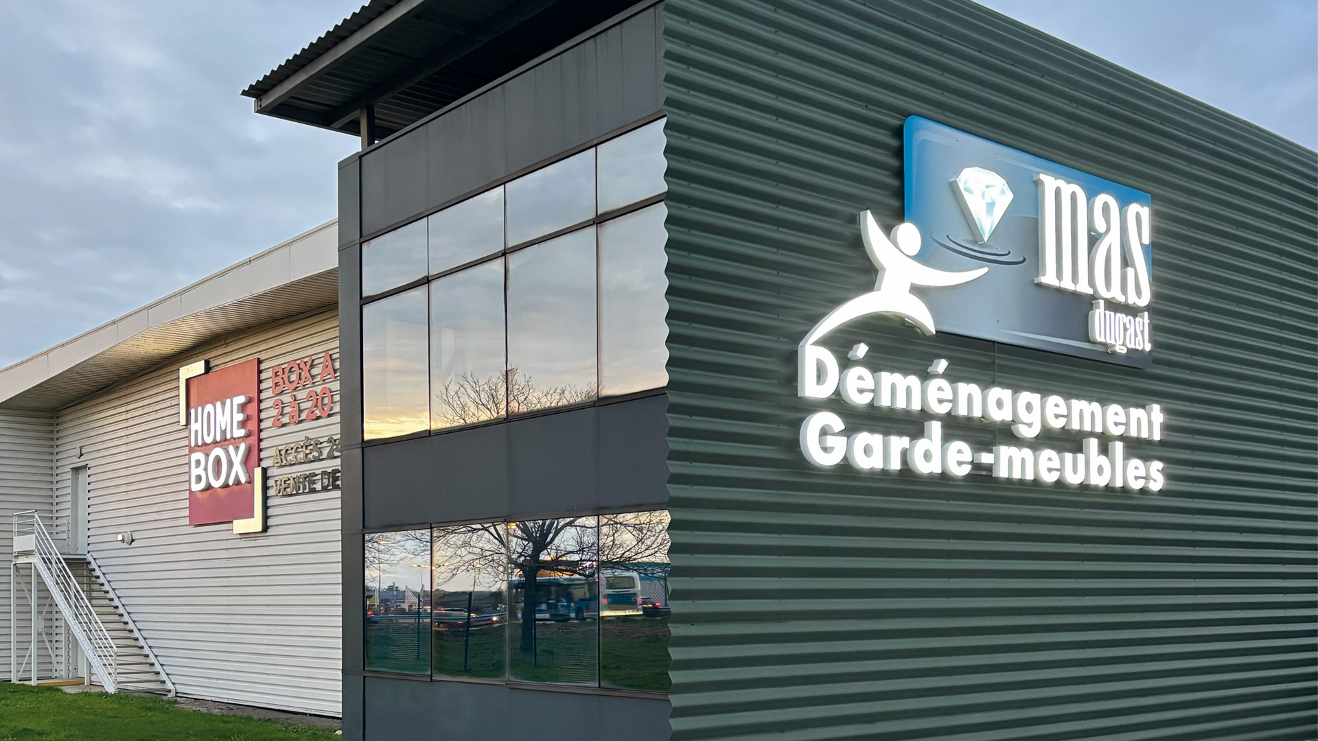 Création d’une enseigne lumineuse pour l’entreprise Mas-Dugast aux Sables d’Olonne selon le RLPi en vigueur
